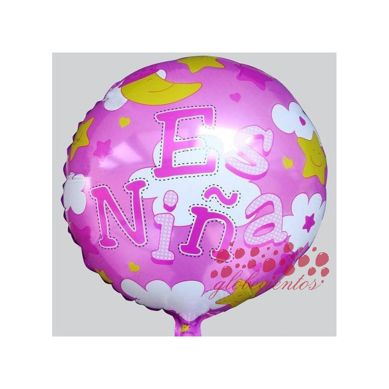 Globo redondo nubes y estrellas "Es Niña", 45 cm.