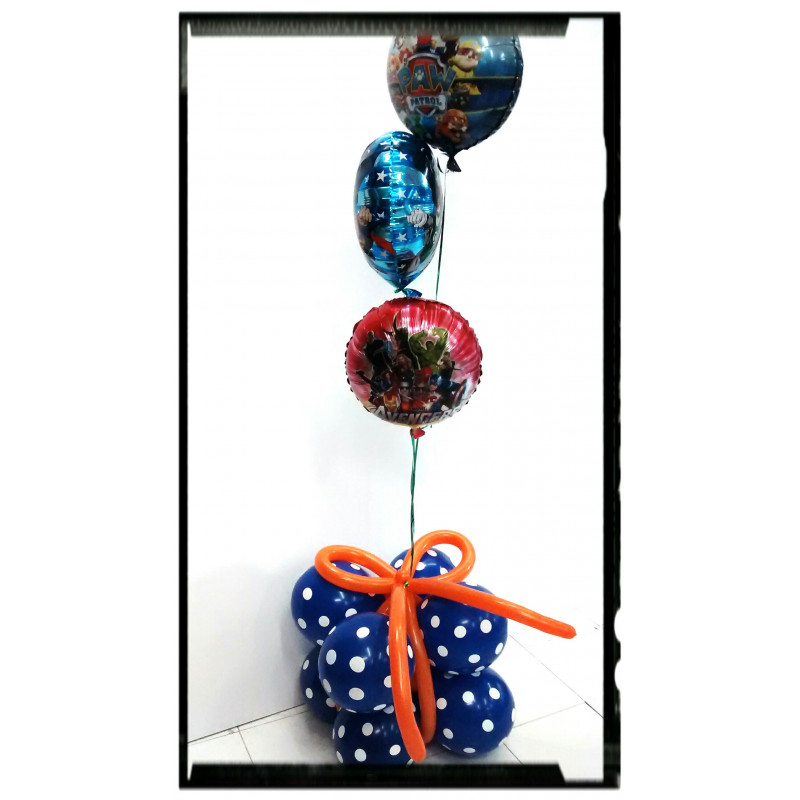 Caja de regalo de globos y bouquet personajes variados