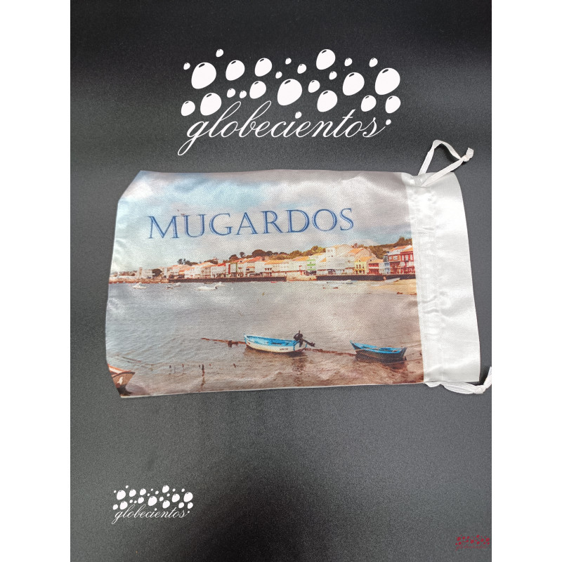 Bonita bolsa pequeña de tela con la imagen del pueblo de Mugardos