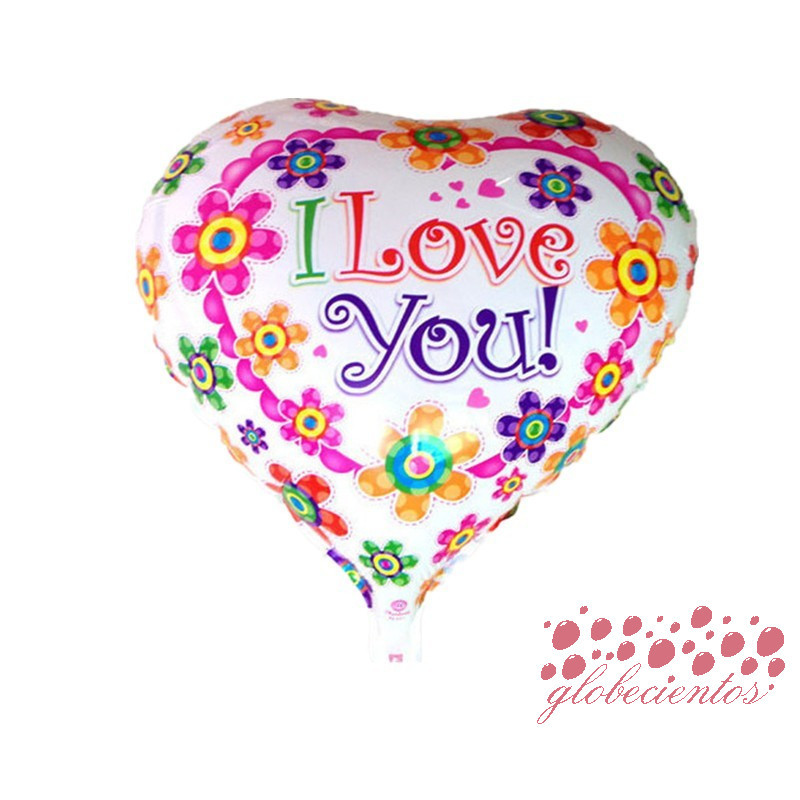 Globo corazón "I Love You!" flores 45 cm
