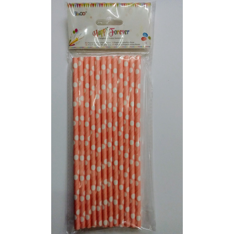 Pajitas roas con lunares blancos