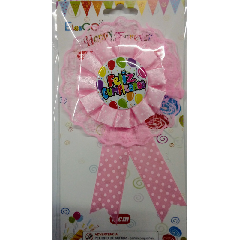 Escarapela FELIZ CUMPLEAÑOS, color rosa.