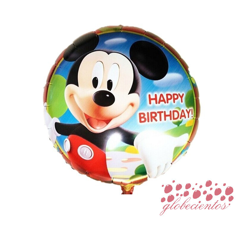 Globo redondo Mickey "Happy Birthday!", 45 cm.