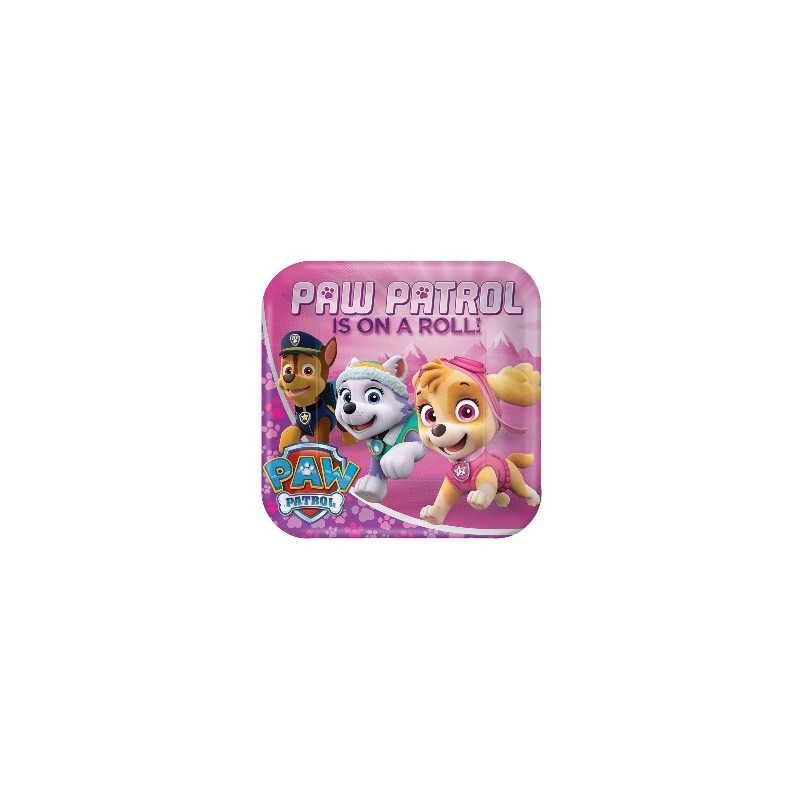 PLATOS 23cm CUADRADO PATRULLA CANINA ROSA