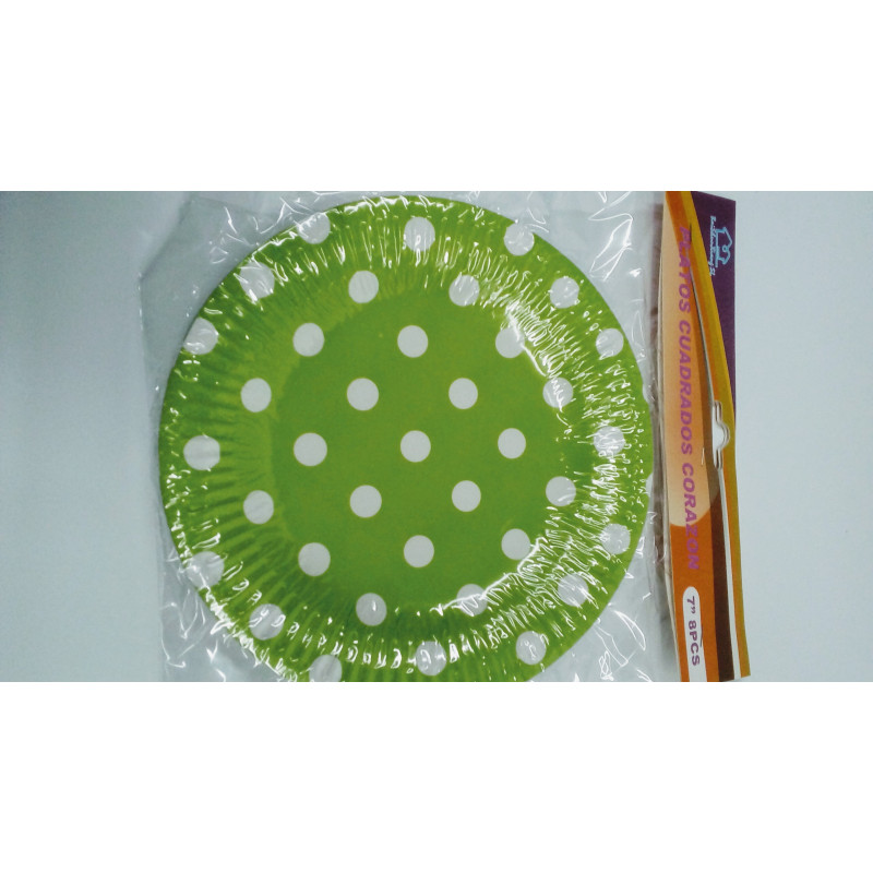 Plato de Cartón de 18 cm. Verde puntos blancos