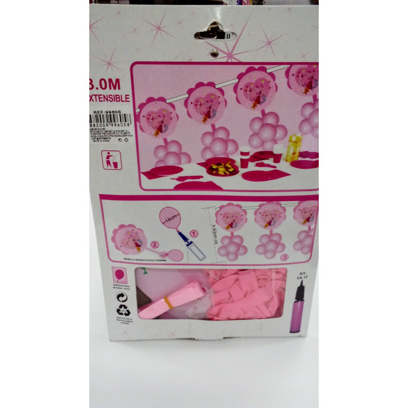 Guirnalda de globos y cartel de cartón bebe rosa. 3 metros,