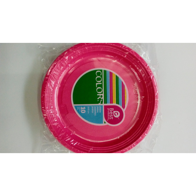 Pack platos plásticos, 10 uds, color rosa.