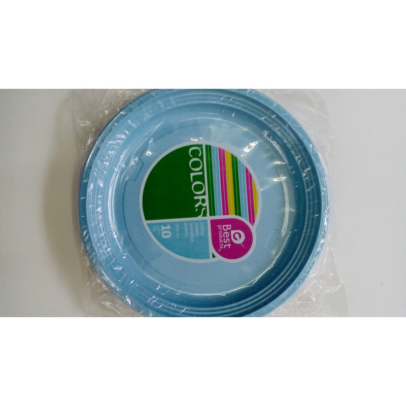 Pack platos plásticos, 10 uds, color azul.