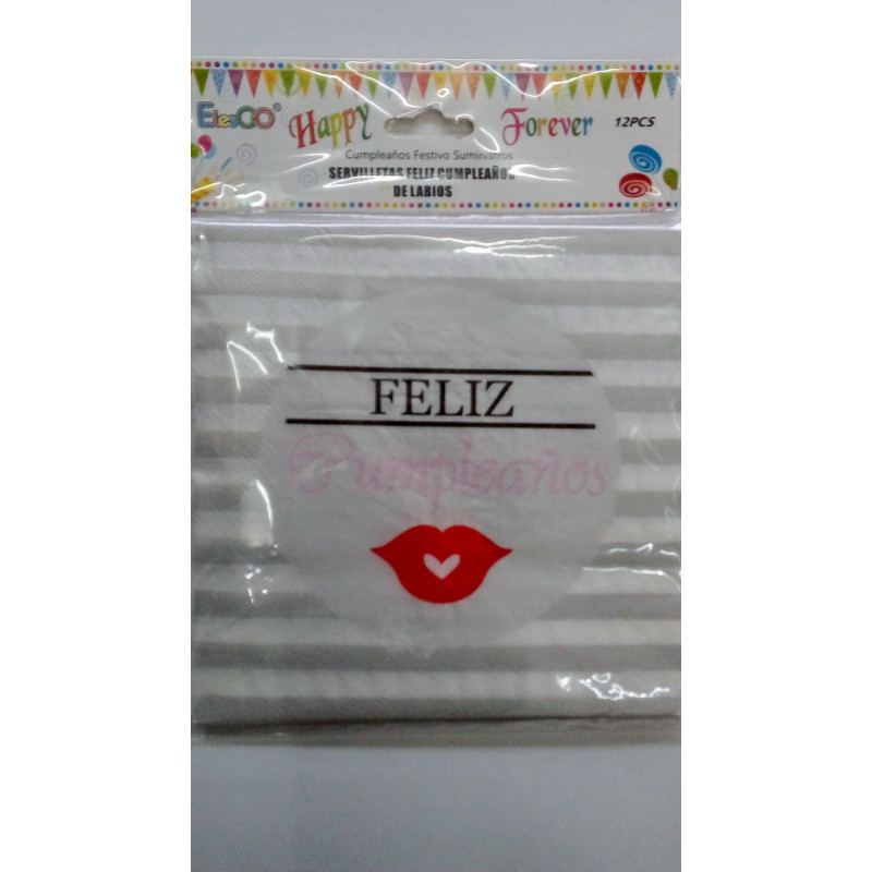 Pack servilletas, 12 uds, feliz cumpleaños "beso".