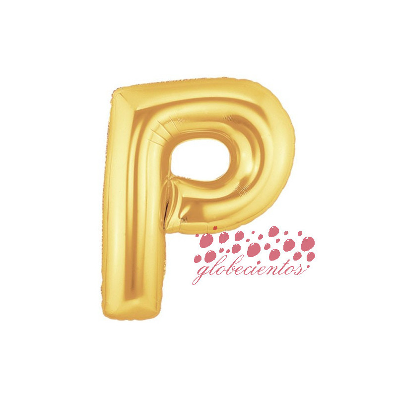 Globo letra P dorada, 38 cm.