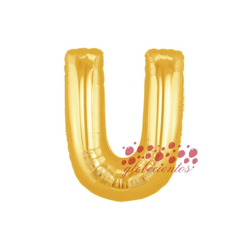 Globo letra U dorada, 38 cm.