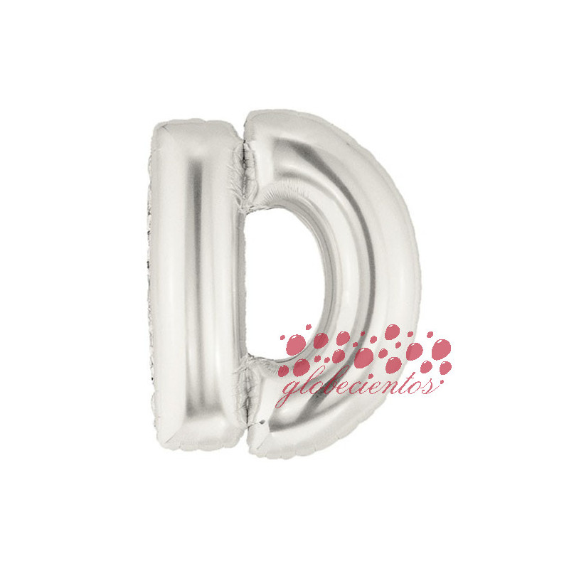 Globo letra D plateada, 97 cm.