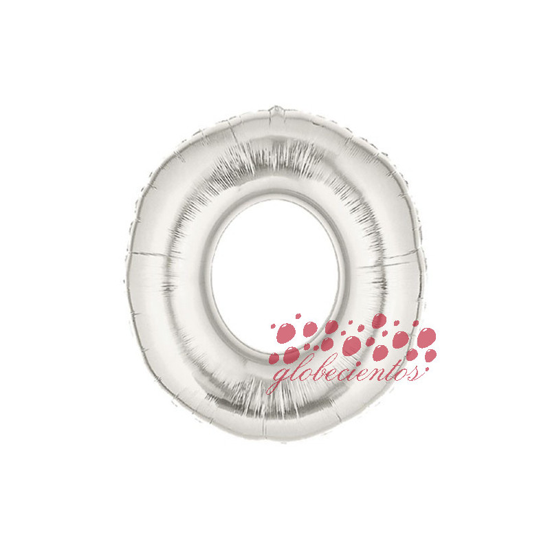 Globo letra O plateada, 38 cm.