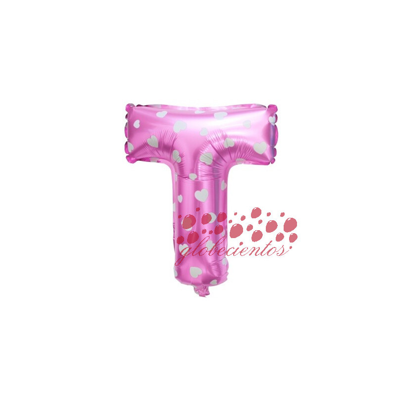 Globo letra T rosa, 38 cm.