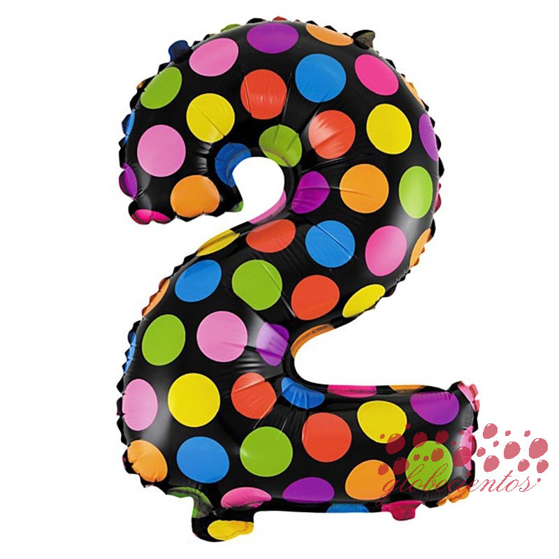 Globo número 2 diseño puntos multicolores, 38 cm