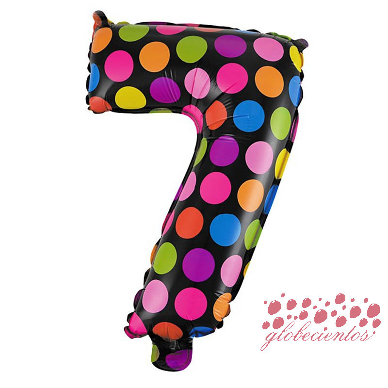 Globo número 7 diseño puntos multicolores, 38 cm.