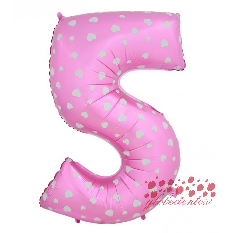 Globo número 5 rosa, 38 cm.