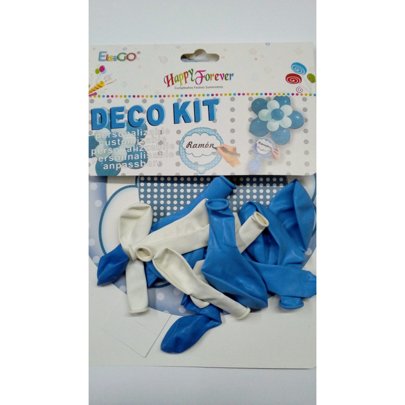 kit de globos para personalizar, con cartulina. Azul y blanco.