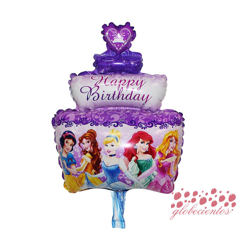 Globo "Happy Birthday" tarta princesas, 48x28 cm.