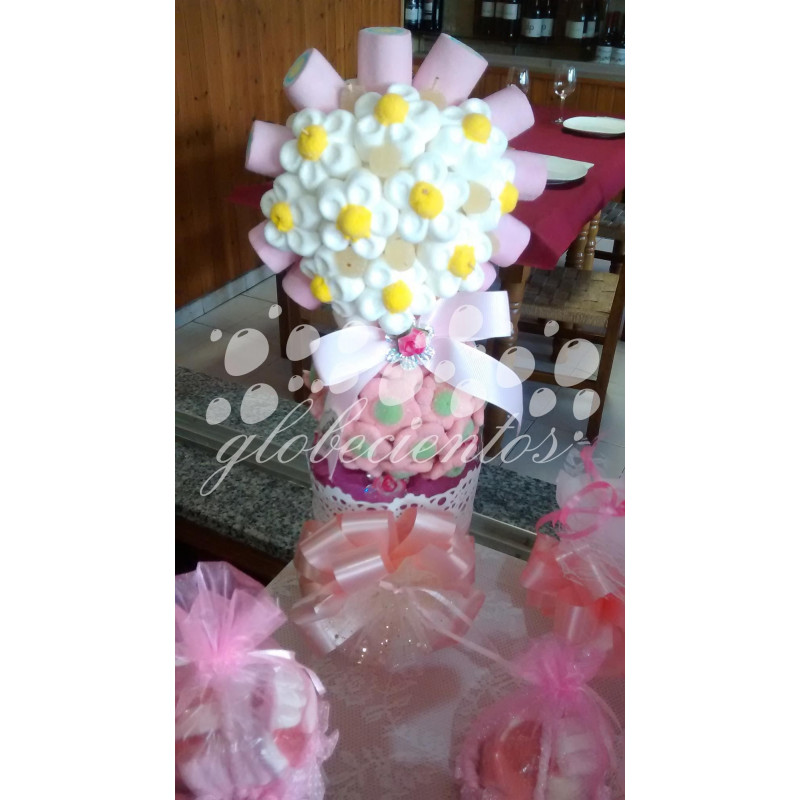 Tarta de gominolas forma flor en maceta